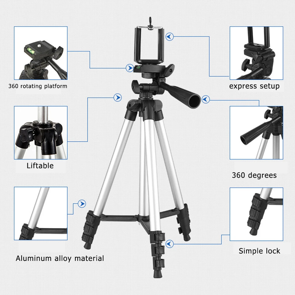 5.Compatibilitate extinsă:Suportă toate tipurile de smartphone-uri (Android și iOS) și dispozitive digitale cu un șurub universal de 1/4’’.