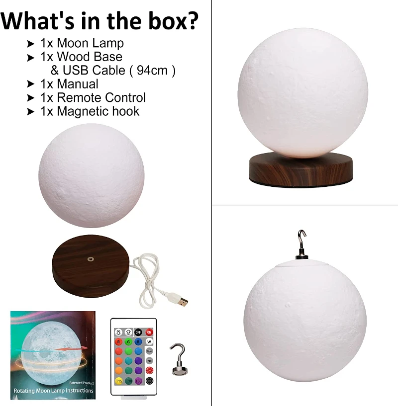 Adaugă un strop de magie în casa ta cu lampa 3D în formă de lună! Realizată din material PLA ecologic, imprimată 3D pentru un design autentic, aceasta oferă opțiuni versatile de iluminare: