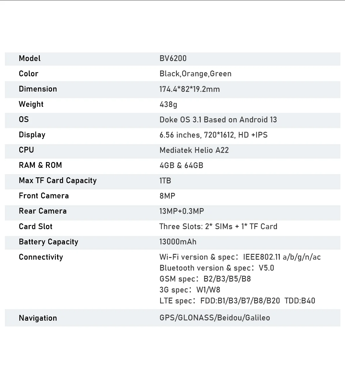 Descoperă telefonul BLACKVIEW BV6200 pe MD STORE – un smartphone robust, ideal pentru activități intense și medii dure. Cu o carcasă rezistentă la apă, praf și șocuri, acest telefon îți asigură performanță și durabilitate maximă în orice condiții. Dotat cu un ecran HD clar, baterie de lungă durată și funcții inteligente, **BLACKVIEW BV6200** este partenerul perfect pentru aventurile tale zilnice. De asemenea, dispune de funcții de securitate avansate și cameră de înaltă rezoluție pentru capturarea celor mai frumoase momente. Cumpără acum BLACKVIEW BV6200 și bucură-te de un dispozitiv de încredere, direct de la MD STORE.