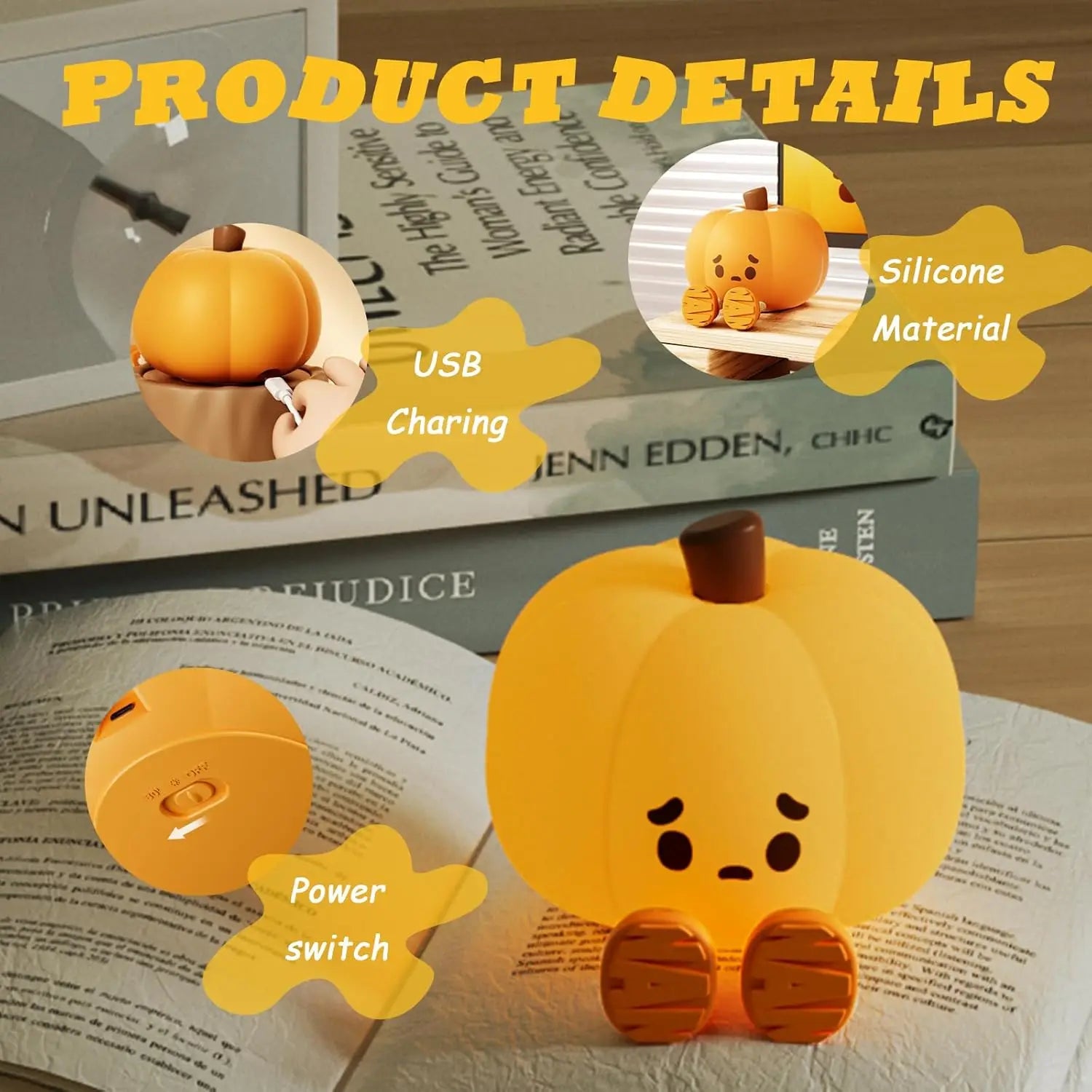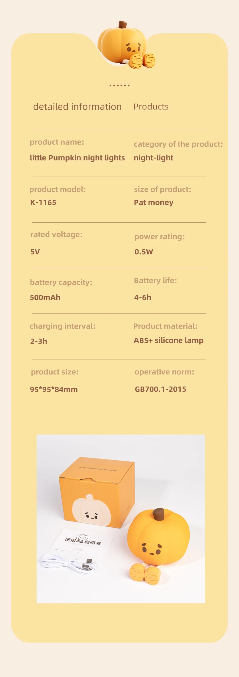 Cu un design unic și adorabil, lampa de dovleac creează o atmosferă caldă și primitoare. Este perfectă ca decor, iar culorile sale liniștitoare ajută copiii să adoarmă mai ușor.Material Sigur și Moale din Silicon.Lampa de dovleac nu doar că are un design creativ, dar oferă și o experiență tactilă plăcută! Fabricată din silicon de înaltă calitate, sigur și fără miros, este ideală pentru bebeluși și copii mici.Reîncărcabilă și Programabila.Cu o durată de funcționare de 4-6 ore după o încărcare de 2-3 ore, lampa include și modul de somn care permite oprirea automată după 30 de minute.
