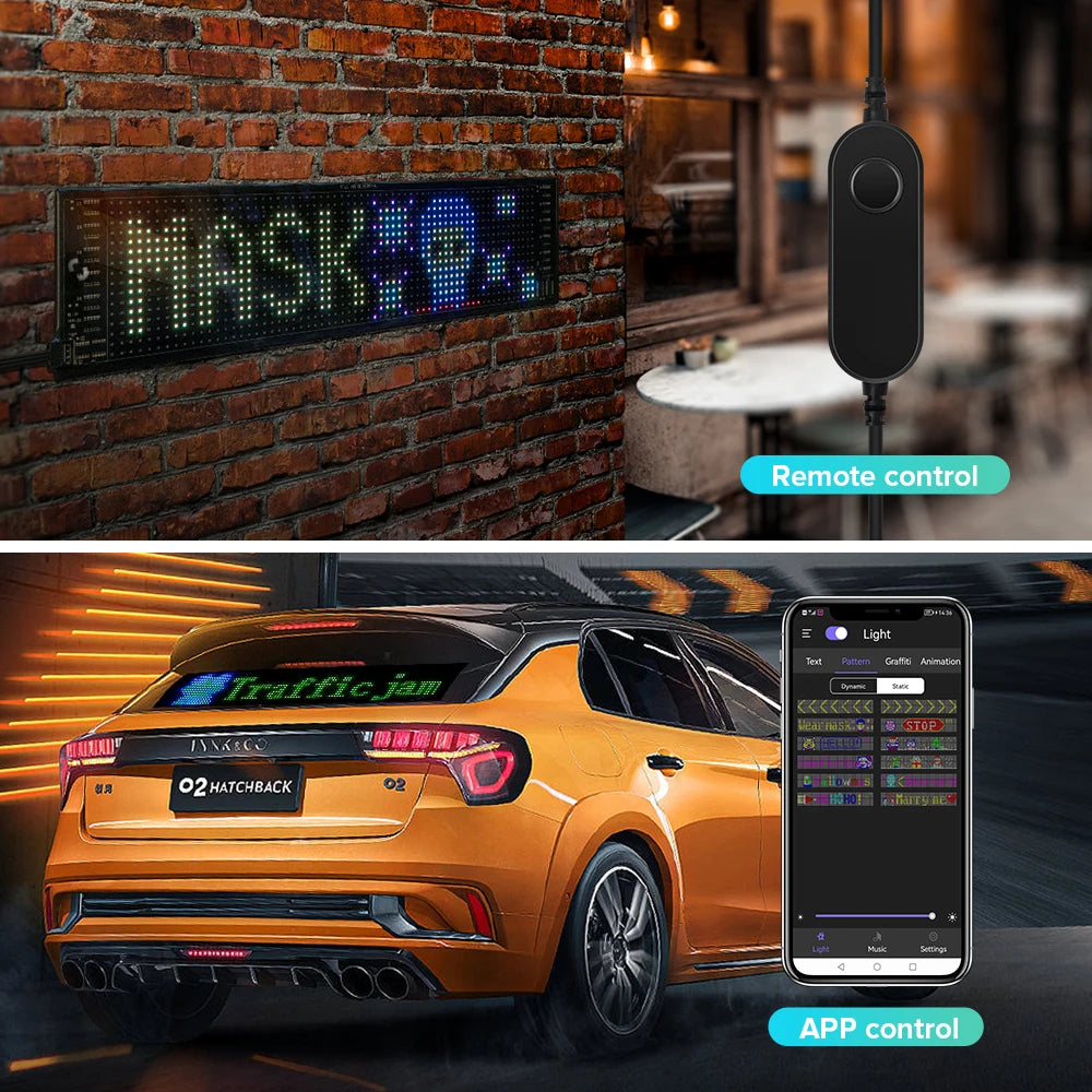 Panoul LED Matrix Pixel este un produs modern și versatil, conceput pentru a adăuga un impact vizual dinamic în diverse spații, precum mașini, vitrine de magazine, cafenele sau spații de divertisment. Acest panou LED flexibil oferă o gamă de efecte vizuale și este complet personalizabil prin aplicația mobilă, folosind conexiune Bluetooth.