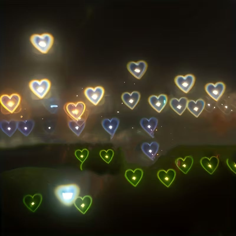 Ochelarii folosesc un filtru optic special care transformă punctele de lumină în inimi sclipitoare, oferind un efect vizual spectaculos atunci când îi porți.